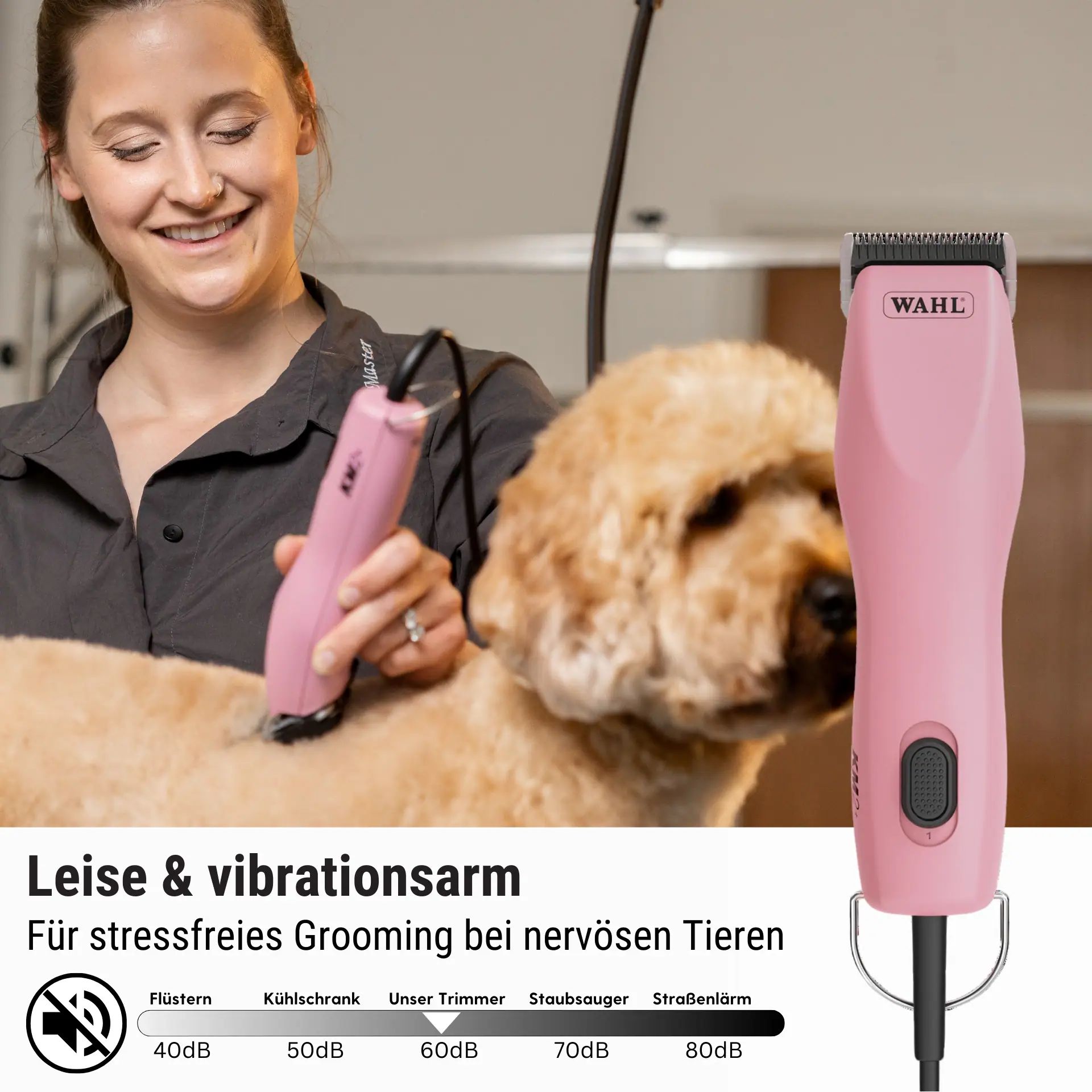 La tosatrice per cani Wahl KM2+ convince grazie al suo design ergonomico, che offre una maneggevolezza confortevole e riduce l'affaticamento durante le sessioni di toelettatura più lunghe. La sua superficie dal colore rosa accattivante la rende non solo moderna, ma anche facilmente riconoscibile. La forma si adatta perfettamente alla mano e migliora il controllo, garantendo un taglio più preciso.