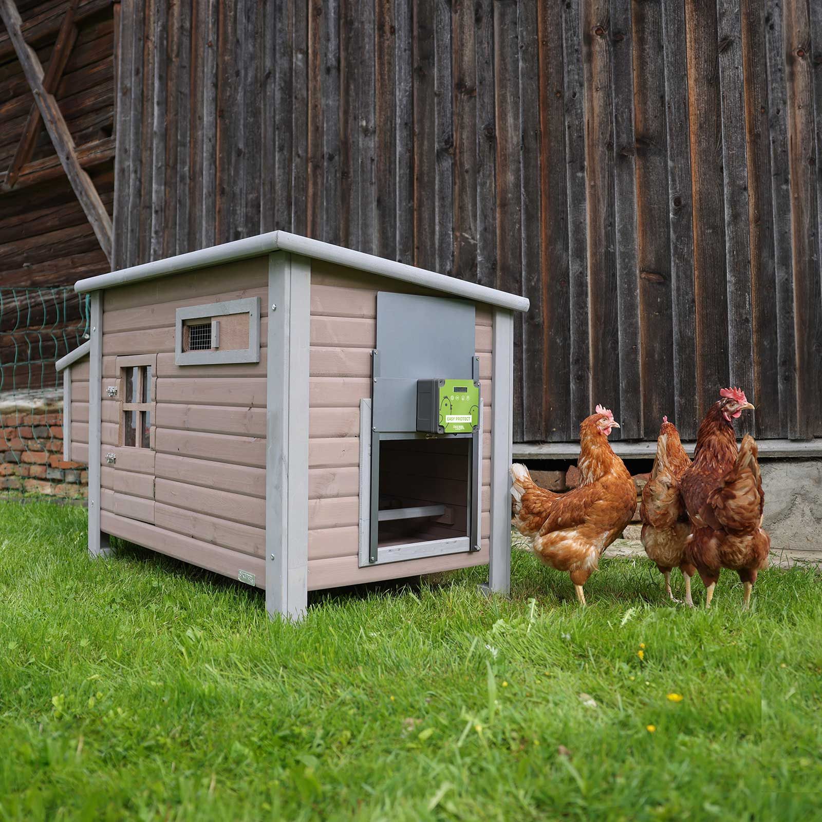 La porta automatica EasyProtect garantisce che le tue galline possano entrare e uscire in sicurezza e comodità, senza che tu debba costantemente controllare. Grazie al controllo dipendente dalla luce con sensore integrato, la porta si apre e si chiude automaticamente, mentre il controllo temporale ti consente di differenziare tra giorni feriali e weekend. L'alluminio robusto assicura una lunga durata e una facile manutenzione, mentre funzioni di sicurezza come il ritardo temporale del segnale luminoso e l'auto-bloccaggio integrato ti garantiscono che i tuoi animali siano sempre protetti.