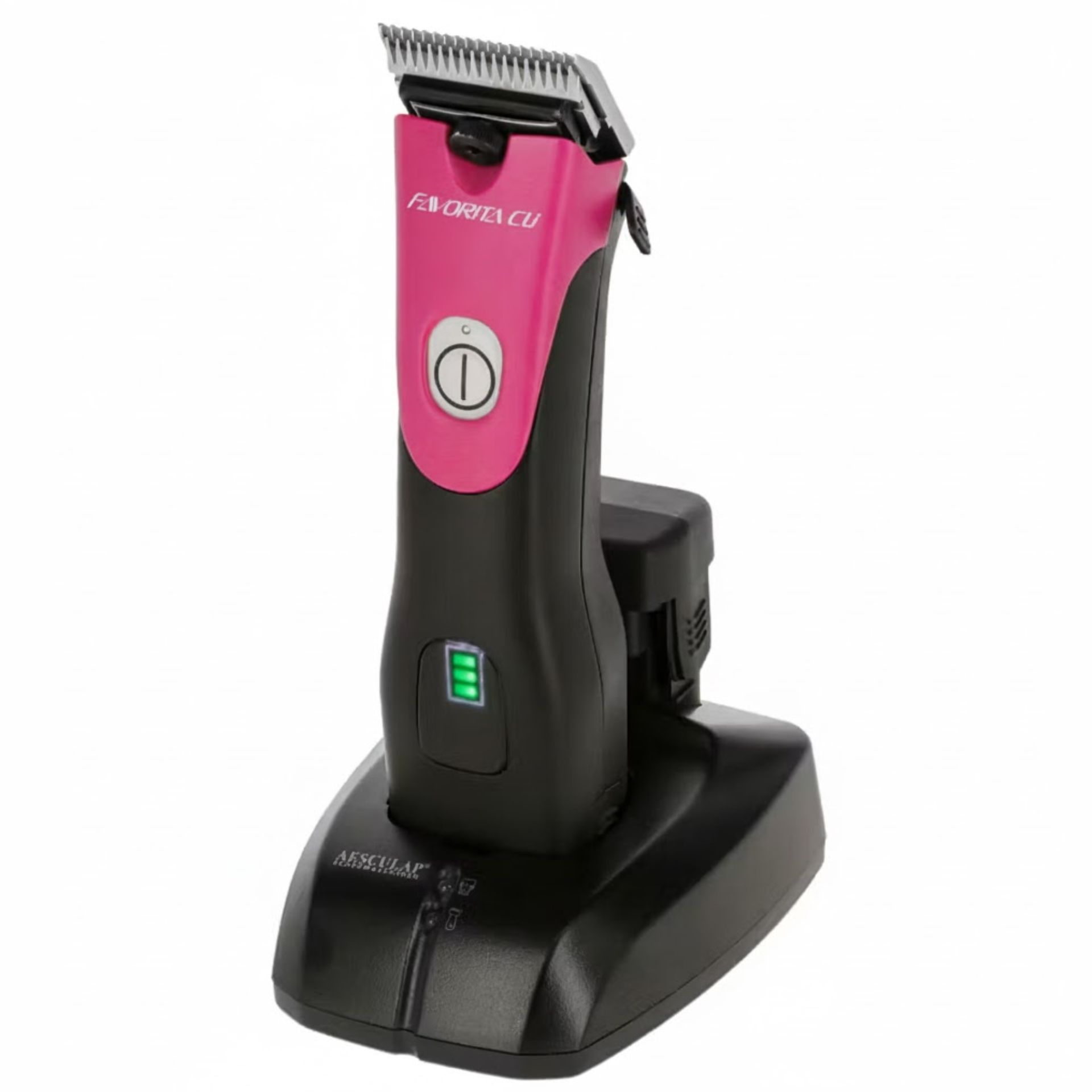 Dotata di motore tipo brushless senza spazzole, la Favorita CLi di Aesculap si distingue per l'assoluta forza di trazione che le permette di raggiungere le 3.300 corse al minuto. Grazie alle batterie agli ioni al litio di ultima generazione sono garantiti tempi di funzionamento significativamente più lunghi rispetto al modello precedente, fino a 180 minuti con una singola ricarica. Dall'alloggiamento ergonomico e perfettamente bilanciato, la Aesculap Favorita CLi, grazie anche al peso di soli 390 grammi può essere saldamente impugnata e usata a lungo senza stancare l'operatore. Particolarmente silenziosa, con un'emissione sonora fino ad un massimo di 63 dB, e dalle vibrazioni ridotte, la Aesculap Favorita CLi è indicata per la tosatura di animali ansiosi o sensibili al rumore. La base di ricarica inclusa nella fornitura è corredata di indicatore a LED e vani di carica per la macchina e la batteria di ricambio.