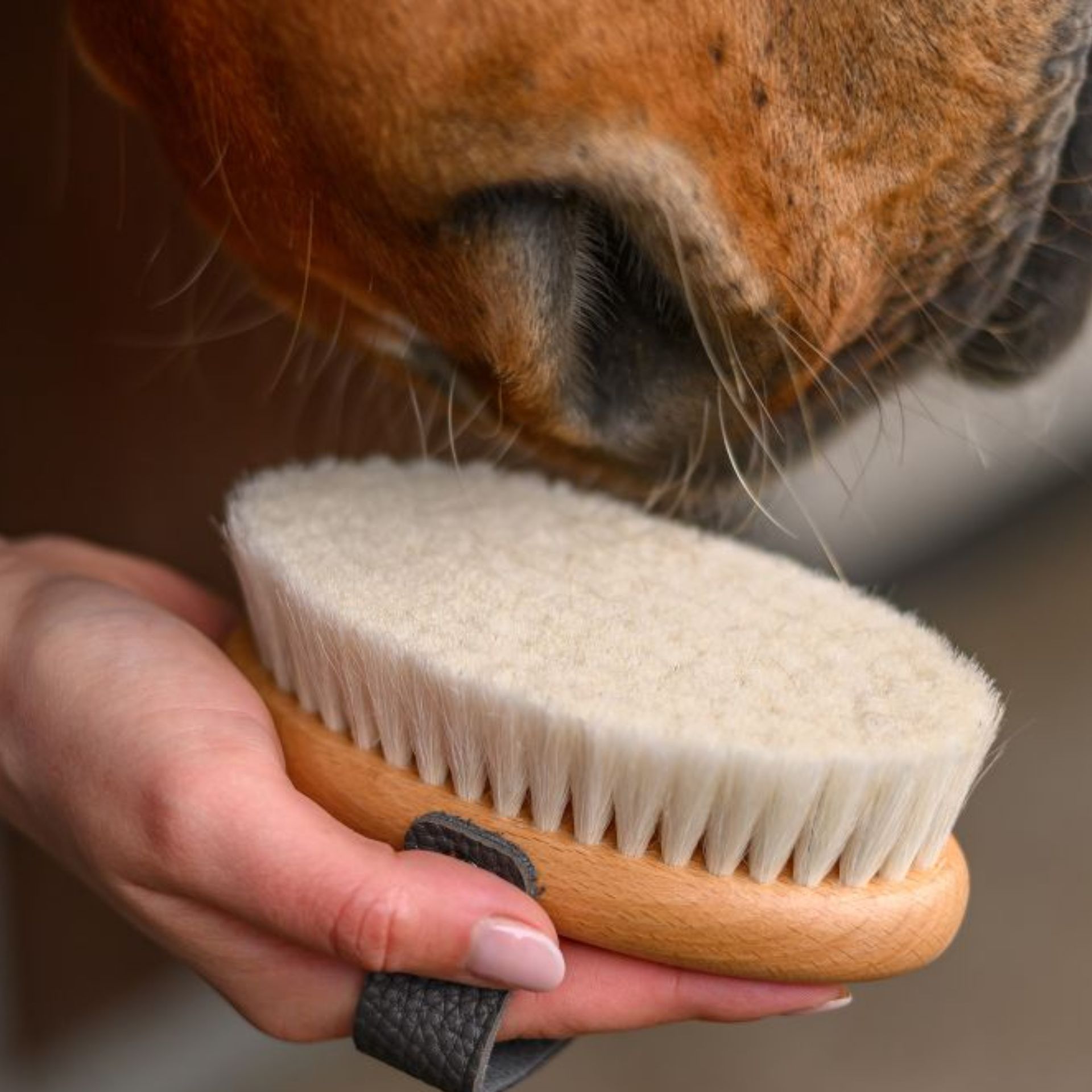 Concedi al tuo cavallo il meglio! Con la Waldhausen Exclusive Line Brusca per cavalli coccolerai la sua testa delicata e otterrai una pelliccia splendente. Le morbide setole naturali sono incredibilmente piacevoli al tatto e rimuovono efficacemente peli e polvere in eccesso, senza irritare la pelle. Il tuo cavallo la amerà!