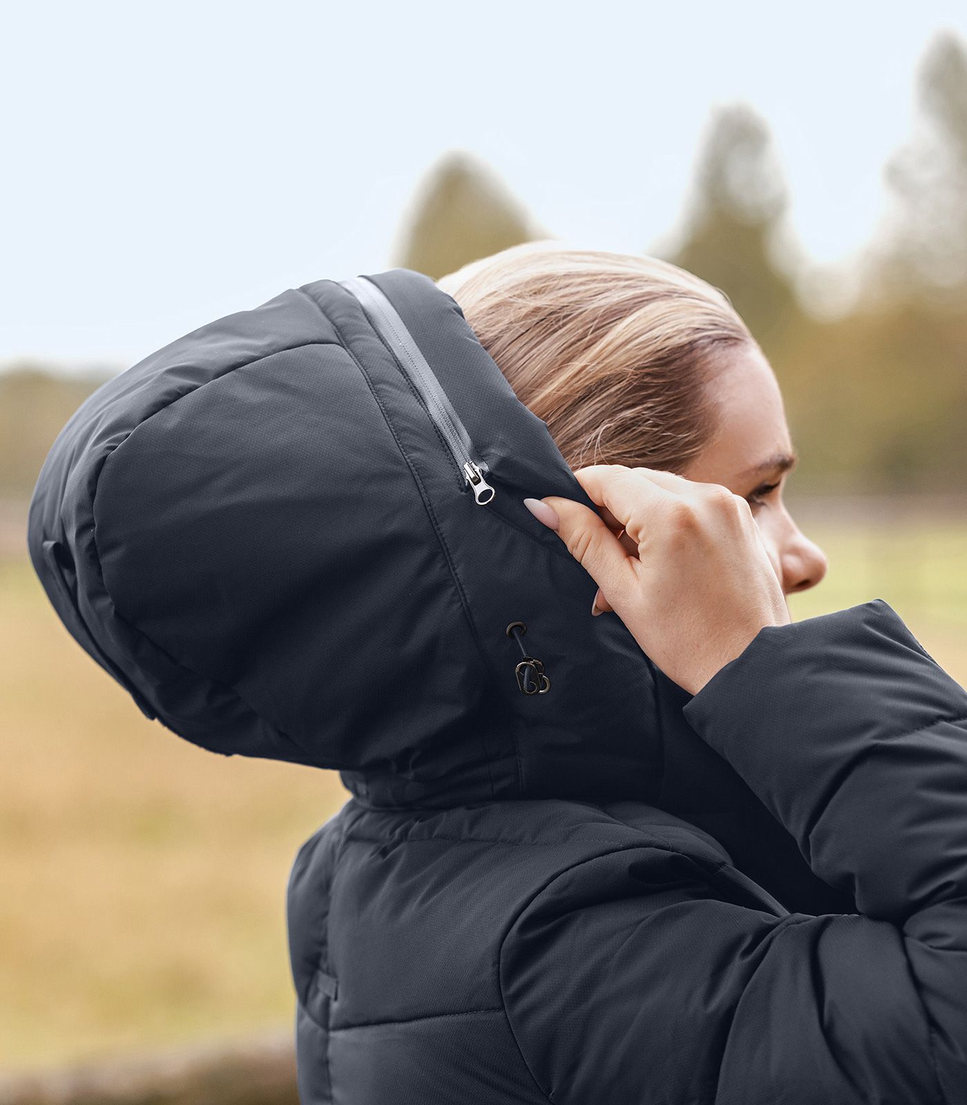 L'ELT Cappotto da equitazione Saphira Advanced è molto più di un semplice cappotto: è la tua affidabile protezione dal vento e dalle intemperie. Con la sua imbottitura simile al piumino ti mantiene piacevolmente al caldo, mentre la membrana traspirante garantisce una sensazione di comfort. L'accurata dotazione, dalla cappa removibile alle pratiche tasche, lo rende il compagno ideale per ogni giorno, sia a cavallo che in città.