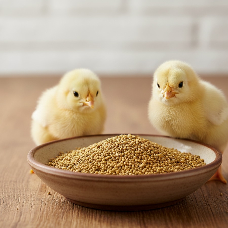 Our finely granulated feed is specially tailored to the small beaks of chicks and minimizes feed loss. The granules ensure optimal nutrient absorption and easy handling.