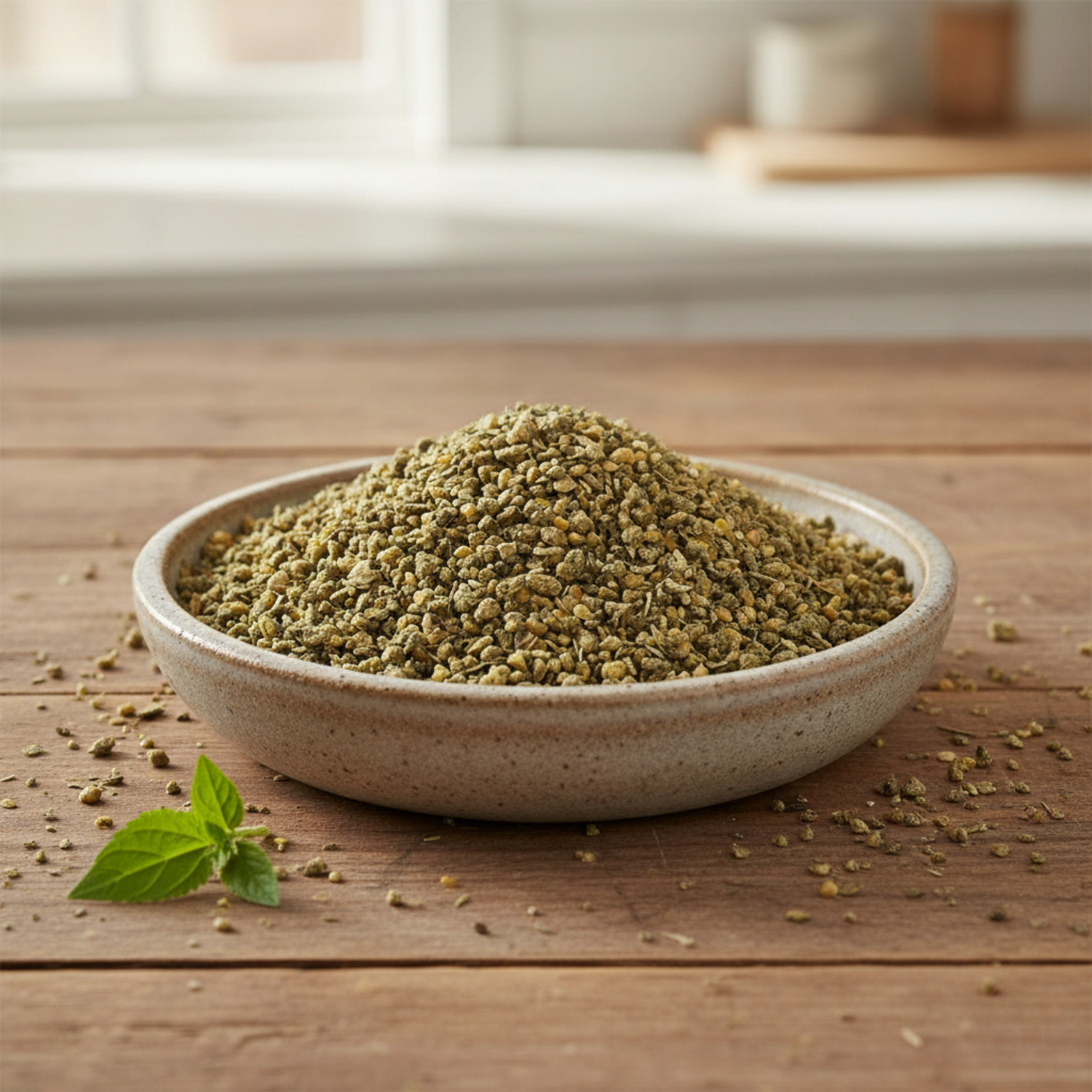 Composition: Corn*, soybean cake*, triticale*, wheat*, sunflower cake*, sodium chloride, sodium sulfate, yeasts (brewer's yeast), seaweed meal*, carob flour*, products from the processing of herbs (peppermint)*, calcium carbonate, magnesium oxide, refined rapeseed oil*, monocalcium phosphate, crude soybean oil*, (sugar) beet molasses*, vegetable components of citronella grass (Cymbopogon nardus) and clove (Eugenia caryophyllus), magnesium carbonate *Product from organic farming
