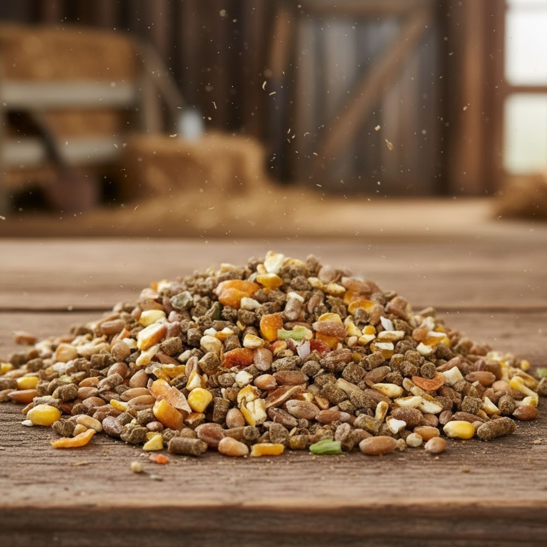 La ricetta si basa su materie prime regionali ed è particolarmente ricca e diversificata. Un punto di forza è il contenuto di gusci di conchiglia: forniscono preziosi minerali che migliorano la resistenza del guscio delle uova e contribuiscono attivamente alla salute delle tue galline. Grazie alla combinazione equilibrata di cereali, erbe aromatiche, verdure e gusci di conchiglia, i tuoi animali ricevono tutto ciò di cui hanno bisogno per una forma fisica naturale e una vita vitale.