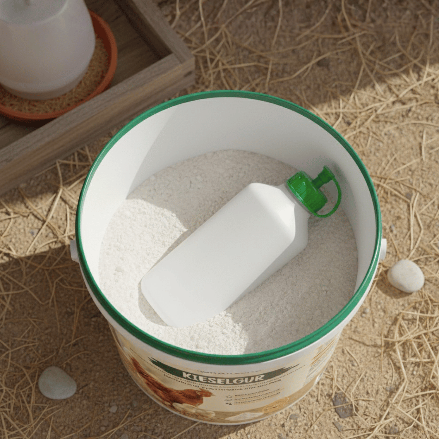 La nostra Terra di Diatomee Naturale è un prodotto naturale al 100%, perfetto per stalla, giardino o casa. Controlla l'umidità in eccesso e garantisce un clima della stalla migliorato. È ideale per allevatori responsabili che puntano sulla gestione biologica della stalla senza compromettere la qualità delle uova e della carne.