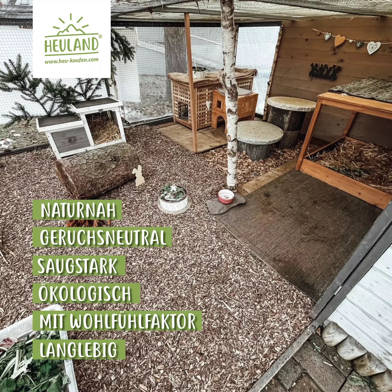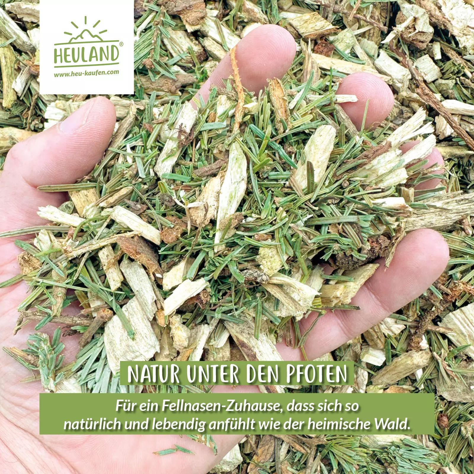 La Lettiera Naturale Sottobosco Heuland porta un pezzo di bosco naturale direttamente a casa dei tuoi animali. È composta al 100% da aghi naturali di abete e pino e piccole particelle di legno e crea una superficie morbida ed elastica che imita in modo ottimale l'habitat naturale di conigli, cavie, polli e anche cavalli. Grazie alla sua assorbenza estremamente elevata, lega efficacemente umidità e odori e garantisce a lungo termine un clima piacevole nella stalla e nel recinto.