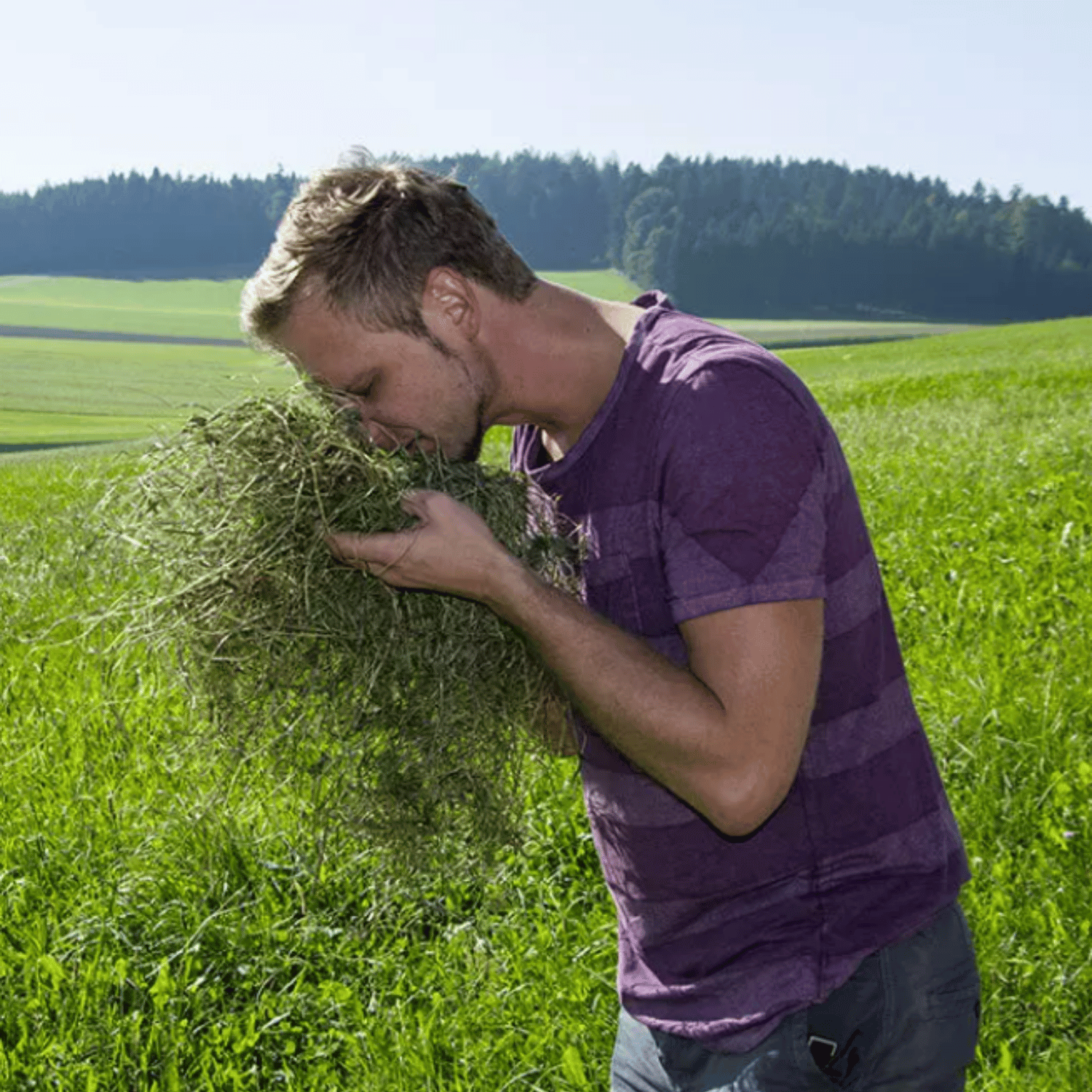 High-quality hay as a raw material alone is not enough to achieve premium quality. Only gentle, technical drying reliably preserves all important nutrients, trace elements, and minerals. The original green color is also retained. We utilized this knowledge in the development of our Forest Floor bedding.