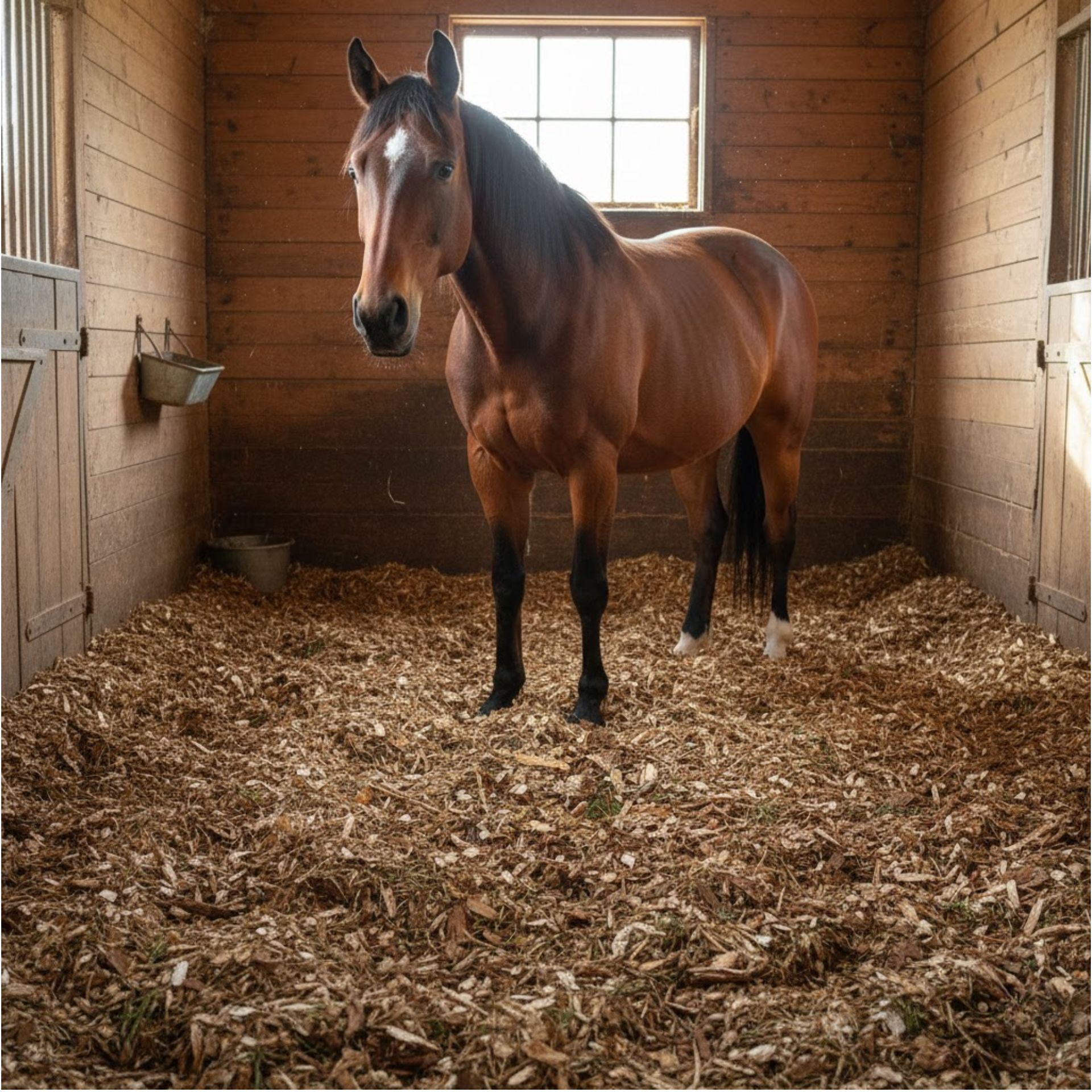 Particolarmente confortevole per i cavalli: La lettiera è a basso contenuto di polvere e protegge le vie respiratorie, mentre i materiali naturali e delicati sulla pelle riducono al minimo le irritazioni cutanee e le reazioni allergiche. Il profumo naturale della lettiera sottobosco ha un effetto calmante sui cavalli e migliora il clima della stalla. Inoltre, il carattere morbido ed elastico della lettiera offre un elevato comfort, può prevenire piaghe da decubito e problemi articolari e facilita lo smaltimento del letame grazie all'efficace legame dell'umidità.
