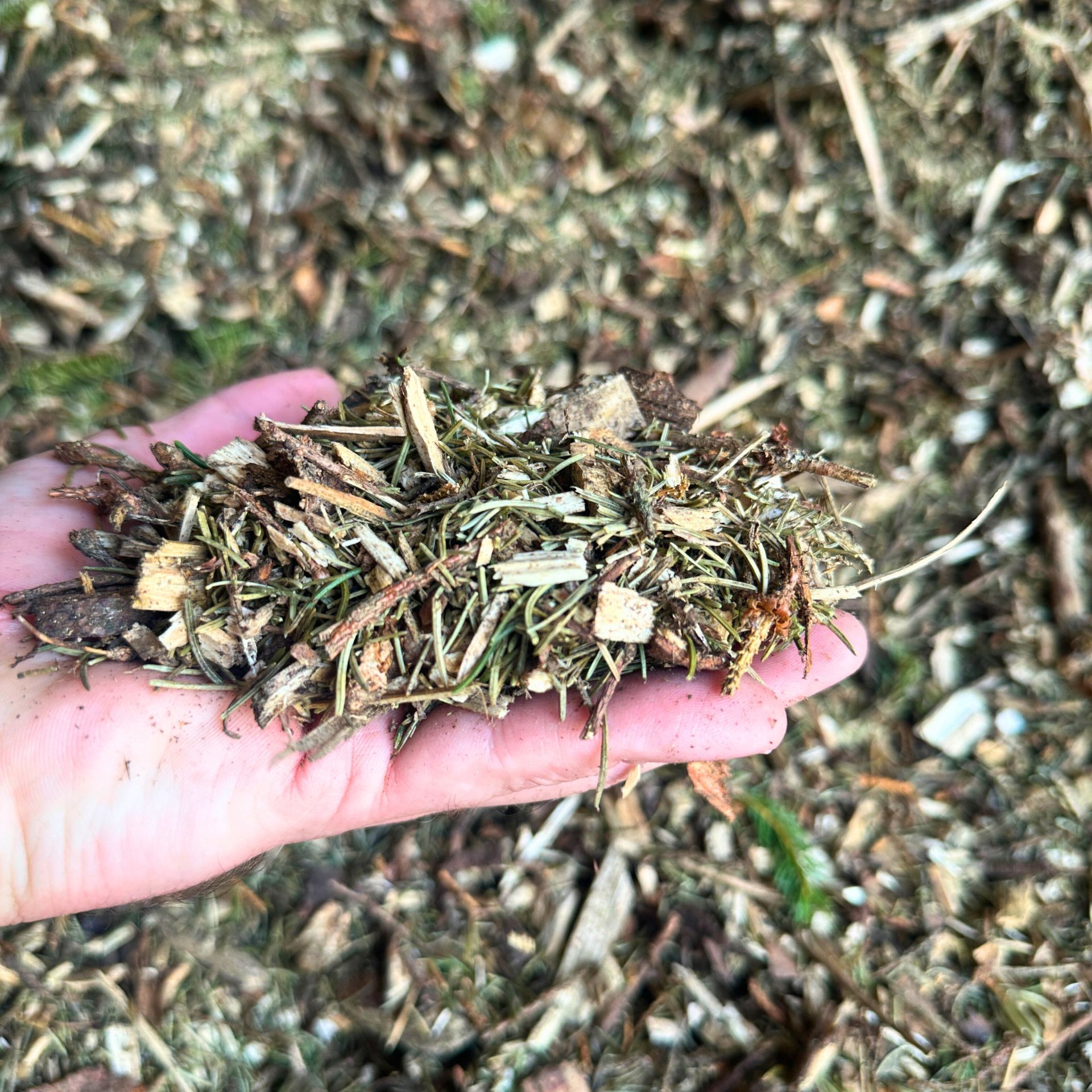 - Materiale: Aghi di abete e pino, piccole particelle di legno