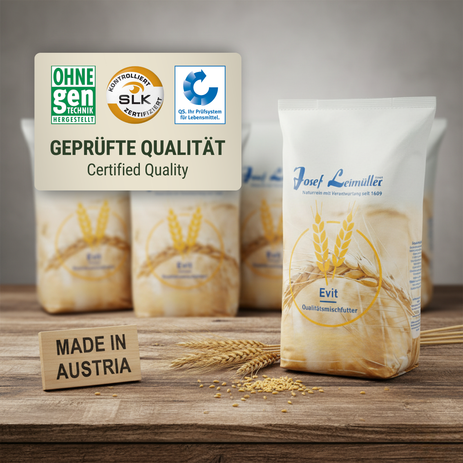 Fidati della tradizione e dell'esperienza ultracentenaria di Leimüller, il produttore austriaco di alimenti di alta qualità, privi di OGM, per animali domestici, animali da fattoria e animali selvatici. Leimüller attribuisce particolare importanza a rigorosi controlli di qualità e utilizza solo materie prime attentamente selezionate, la maggior parte delle quali proviene da agricoltori locali. La combinazione di ingredienti regionali e lavorazioni moderne garantisce alimenti ricchi di nutrienti e delicati che supportano la salute e la vitalità dei tuoi animali. Scopri la vasta gamma di prodotti su Agrarzone e dai ai tuoi animali il meglio - con Leimüller.