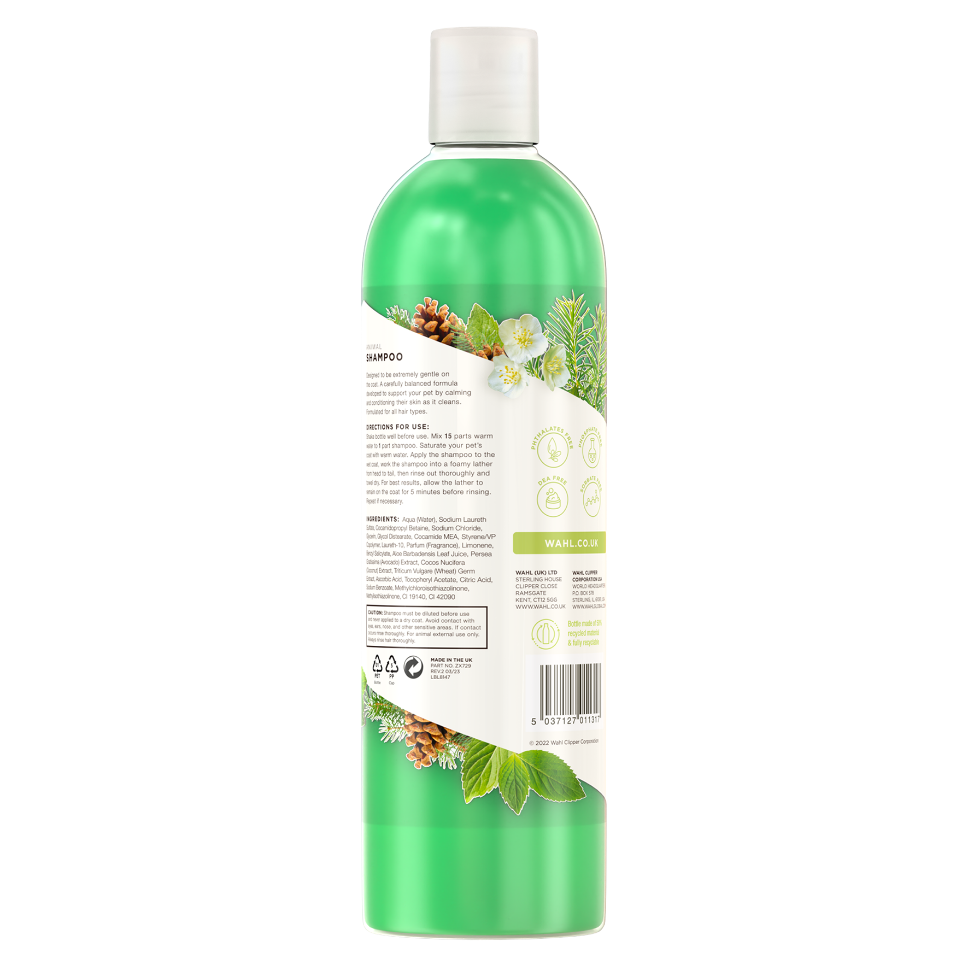 Lo shampoo concentrato per cani Wahl Aloe Soothe offre una pulizia delicata per i cani con pelle sensibile o soggetta a prurito. Un vantaggio chiave è il rapporto di miscelazione molto economico di 1:15: da un flacone da 500 ml di concentrato si possono miscelare 7,5 litri di shampoo pronto all'uso. Questo rende il prodotto una soluzione molto conveniente per la toelettatura regolare.
