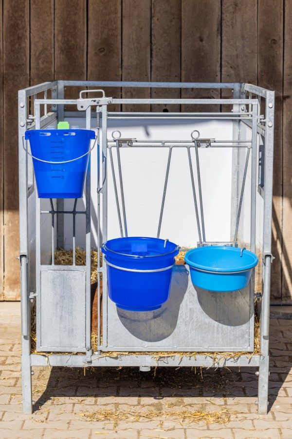 The Headlock/Feeding Barrier for Calf Boxes is made of robust, galvanized metal, which provides permanent rust protection and high stability.