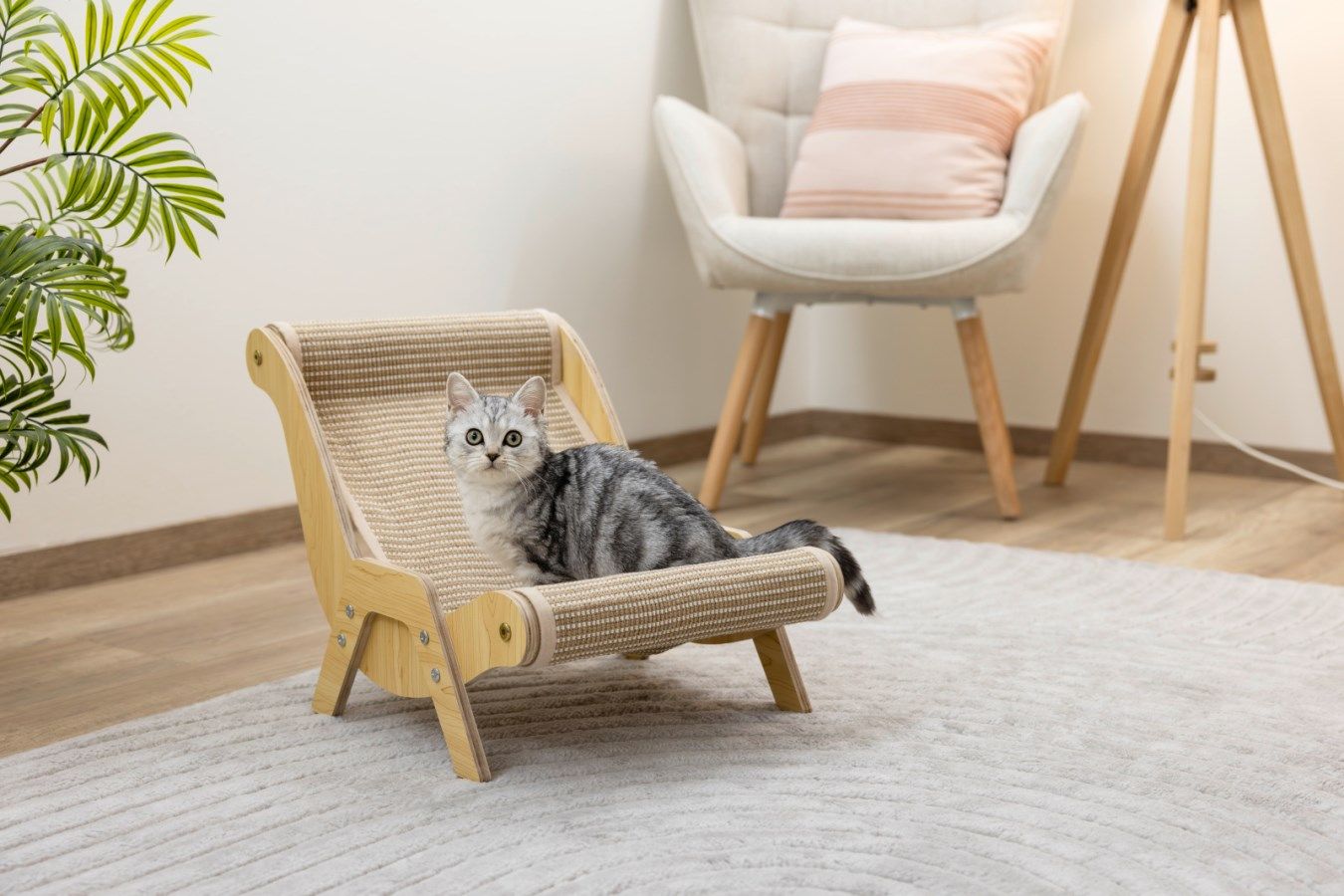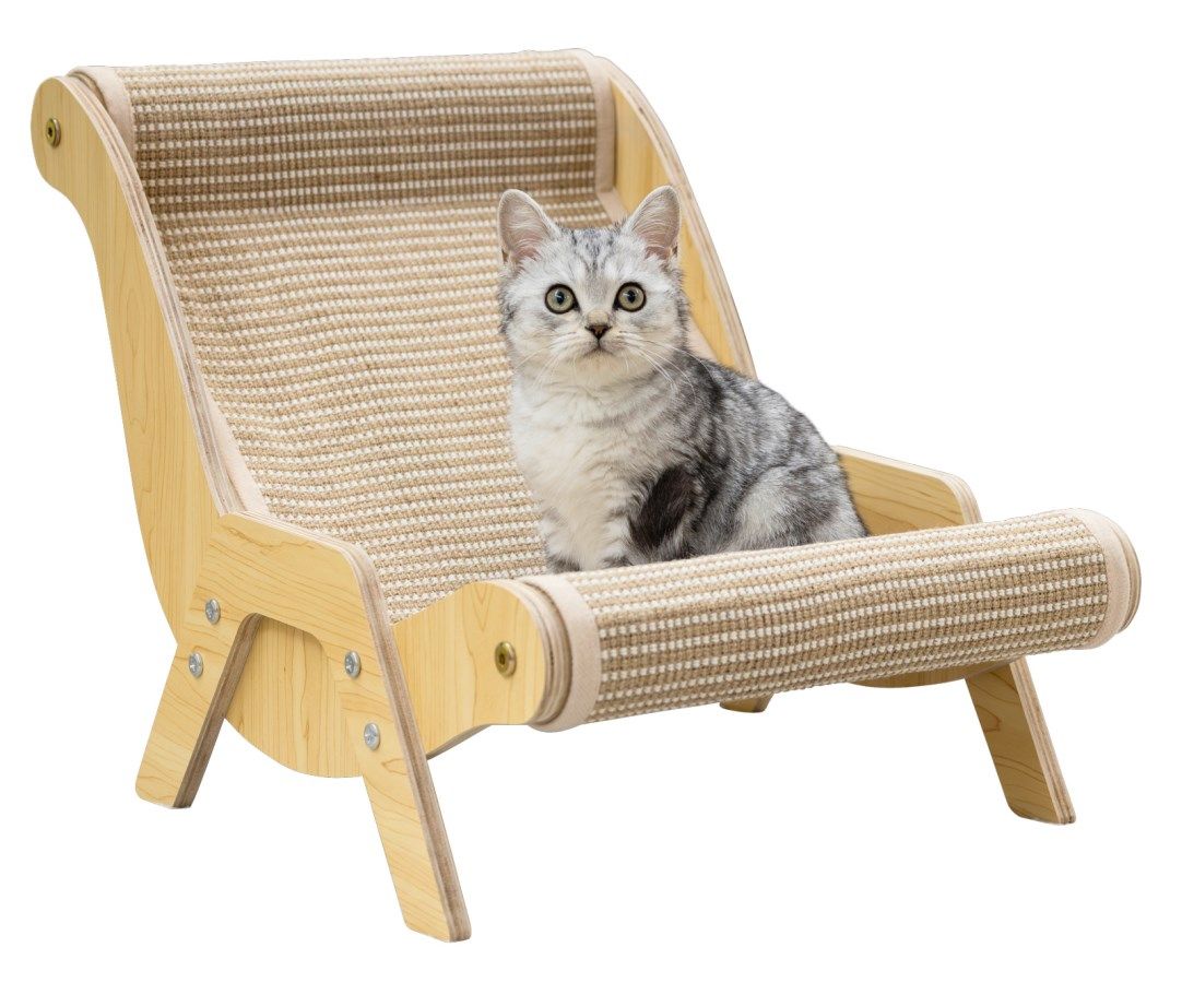 Con Kerbl Pet Sundowner Sdraio per gatti tiragraffi in legno regali al tuo micio un lussuoso spazio per il riposo, che conquista grazie alla sua struttura in legno massiccio e all'estetica originale di una sdraio prendisole. Questo elegante elemento d'arredo si integra perfettamente nella tua casa, offrendo al tuo piccolo amico un luogo esclusivo dove rilassarsi.