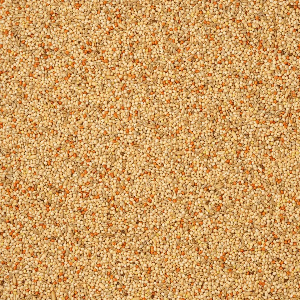 70,00 % miglio giallo, 15,00 % semi lucidi, 10,00 % miglio rosso, 5,00 % avena arrotolata