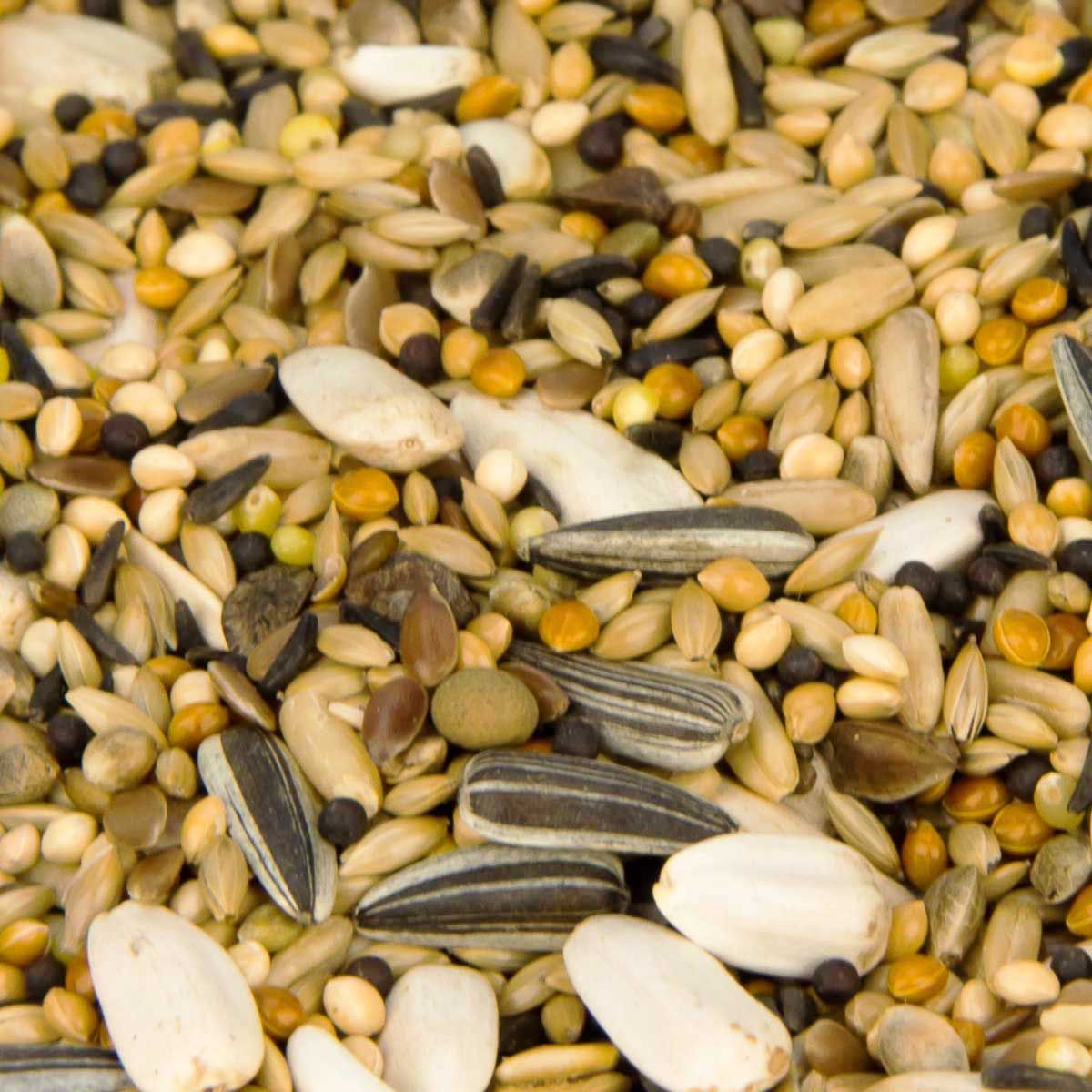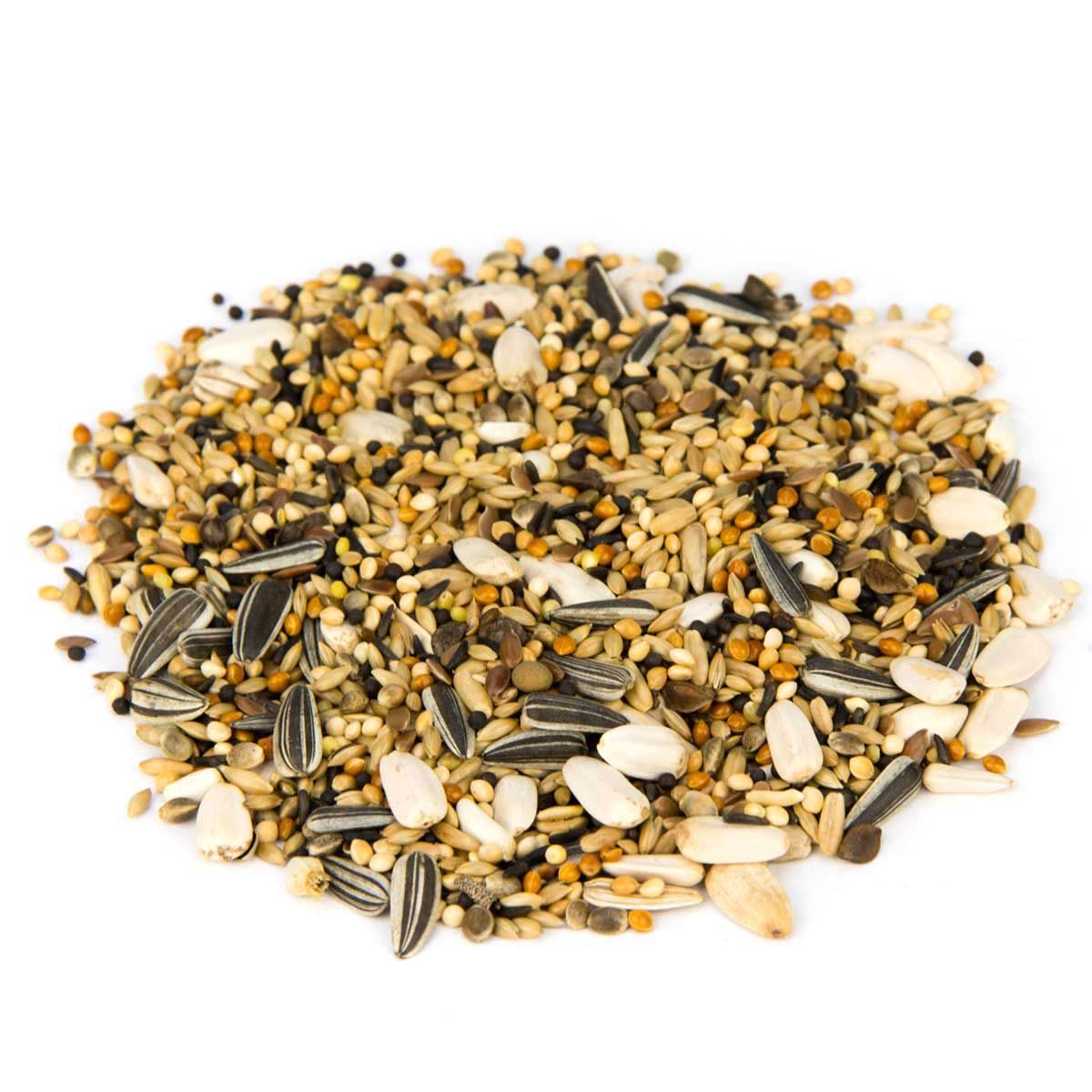 21 % di semi lucidi, 20 % di miglio giallo, 9 % di miglio rosso, 9 % di avena arrotolata, 9 % di girasole striato, 9 % di girasole bianco, 6 % di semi neri, 6 % di semi di lino, 4 % di canapa, 3 % di rapa nera, 2 % di grano saraceno, 2 % di semi di cardi